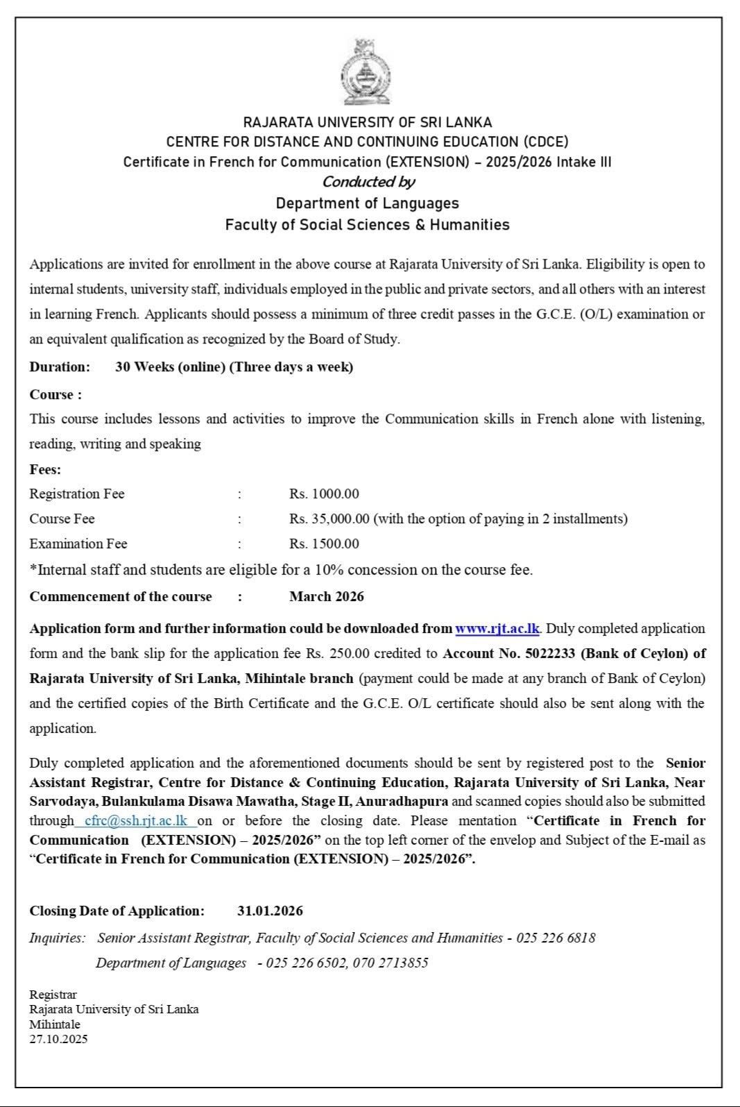 The Registration deadline for the Intake III has now been extended to 31.1.2026. Please find the details using the below link. Kindly share this with your friends and any other interested parties.