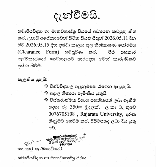 Rajarata University of Sri Lanka, Mihintale (50300), Sri Lanka