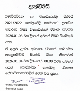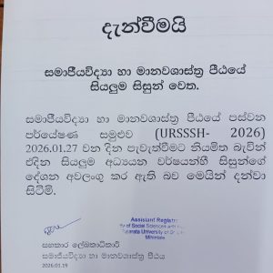 Notices Notice A Webinar on“CLIMATE CHANGE,POPULATION AND DEVELOPMENT INSRILANKA” January 20, 2026 / Notice Notice Notice January 20, 2026 / Notice Notice ANNUAL RESEARCH CONFERENCE OF THE POPULATION ASSOCIATION OF SRI LANKA January 19, 2026 / Notice Notice Grace Chance Result- Year 2 Semester II January 14, 2026 / Notice Notice Grace Chance Results – Year 1 Semester II January 14, 2026 / Notice Notice Regarding Dissertation Effective date January 8, 2026 / Notice Notice Notice January 2, 2026 / Notice Notice Awarding of Mahapola Scholarship Certificates January 2, 2026 / Notice News Happy New Year 2026! January 1, 2026 / News News Annual Progress Review Workshop – 2025 December 31, 2025 / News Notice Time table – Year 2 Semester II December 24, 2025 / Notice Notice Notice – Regarding Dissertation Deadline December 22, 2025 / Notice Notice Commencement of Lectures for Semester December 22, 2025 / Notice Notice Time table – Year 1 Semester 2 December 22, 2025 / Notice Notice Commencement of Semester- FSSH December 22, 2025 / Notice Notice Notice -BA (Hons) ECON 31053 December 22, 2025 / Notice 1 2 3 … 9 ›