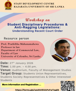Notices Notice Result – Year 2 Semester II – Grace Chance February 3, 2026 / Notice Notice 30 Years Celebration February 2, 2026 / Notice News Highlights from the 5th Undergraduate Research Symposium 2026 January 27, 2026 / News Notice Workshop on ” Students’ Disciplinary Procedures and Anti Ragging Legislation: Understanding the Recent Court Order” January 26, 2026 / Notice Notice A Webinar on“CLIMATE CHANGE,POPULATION AND DEVELOPMENT INSRILANKA” January 20, 2026 / Notice Notice Notice January 20, 2026 / Notice Notice ANNUAL RESEARCH CONFERENCE OF THE POPULATION ASSOCIATION OF SRI LANKA January 19, 2026 / Notice News Academic Delegation from Tallinn University, Estonia January 16, 2026 / News Notice Grace Chance Result- Year 2 Semester II January 14, 2026 / Notice Notice Grace Chance Results – Year 1 Semester II January 14, 2026 / Notice Notice Regarding Dissertation Effective date January 8, 2026 / Notice Notice Notice January 2, 2026 / Notice Notice Awarding of Mahapola Scholarship Certificates January 2, 2026 / Notice News Happy New Year 2026! January 1, 2026 / News News Annual Progress Review Workshop – 2025 December 31, 2025 / News Notice Time table – Year 2 Semester II December 24, 2025 / Notice 1 2 3 … 9 ›