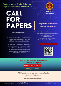 Notices NoticeUncategorized Notice March 23, 2026 / Notice, Uncategorized Notice BA (Hons) Year 3 Semester II Results and Final Results March 20, 2026 / Notice Notice Examination Application and Re-correction Notice & Form March 19, 2026 / Notice Notice Call for papers for the “Rajarata Journal of Social Sciences” – Volume 10, Issue I March 19, 2026 / Notice Notice 2020 Batch Final Result March 17, 2026 / Notice Uncategorized Empowering Students to Overcome Stress: A Counseling Session on Managing Academic Pressure March 16, 2026 / Uncategorized Notice 2020 Batch Final (Supplementary I) Result March 16, 2026 / Notice Notice 2020 -2-I, 2020-3-1, 2021-1-1, 2021-2-1, 2021- 3-1 Repeat Result March 16, 2026 / Notice Notice 2021 Batch Final Results March 16, 2026 / Notice Notice Diploma in Environmental Management – Intake VI (2026/2027) March 12, 2026 / Notice Notice YEAR 3, SEMESTER II (2019/2020 BACH) – SUPPLEMENTARY I -BA March 6, 2026 / Notice Notice YEAR 3, SEMESTER II, PROPER (2020/2021 BATCH) – BA March 6, 2026 / Notice Notice Exam Result – (2019/2020 Batch) BA (Hons) March 5, 2026 / Notice Uncategorized University of Malaya Academic Delegation Visits the Faculty of Social Sciences and Humanities, Rajarata University of Sri Lanka February 26, 2026 / Uncategorized Notice Vacancies: Post of Research Assistants ( On Contract Basis) February 26, 2026 / Notice News 5th Undergraduate Research Symposium -2025 February 19, 2026 / News 1 2 3 … 10 ›